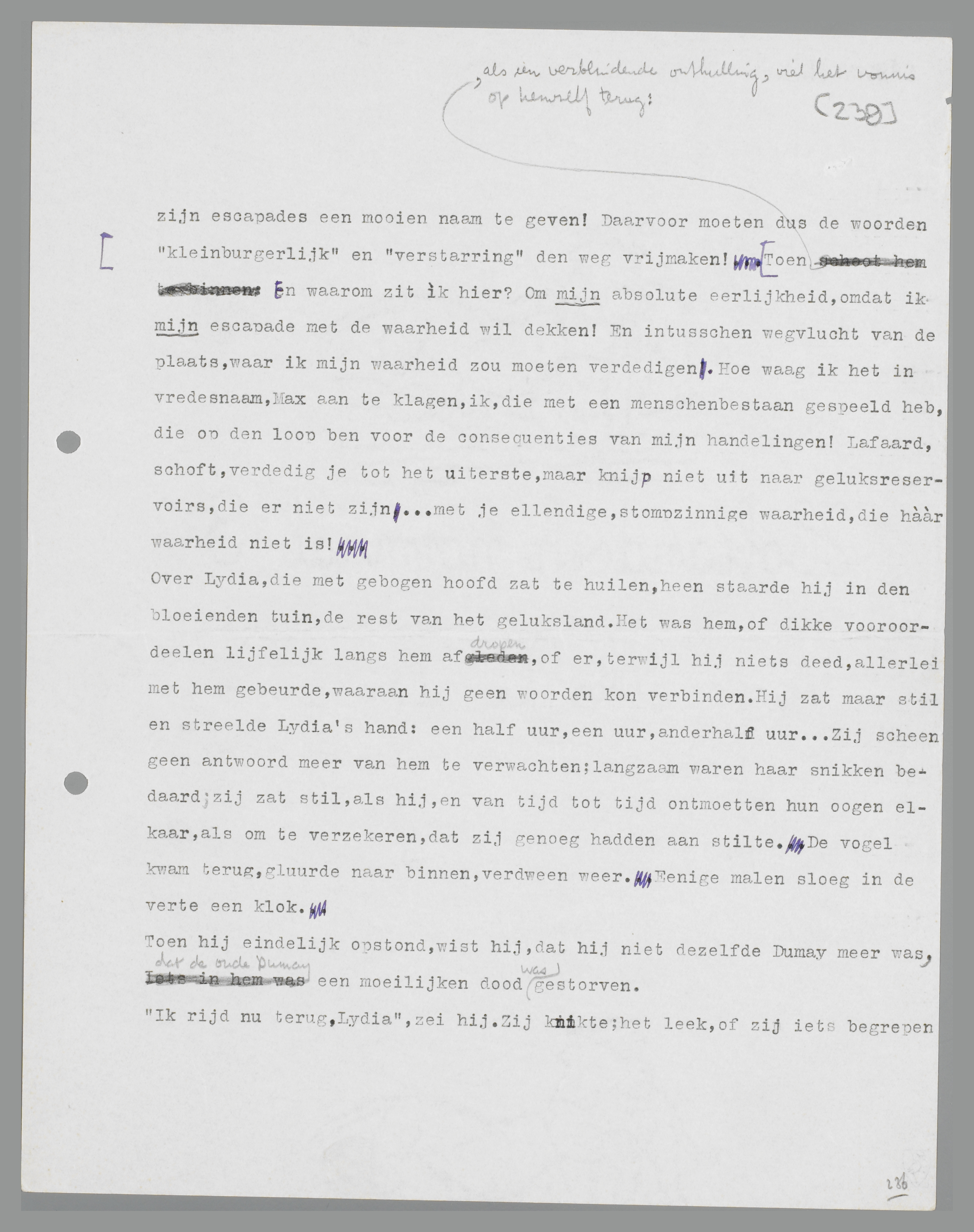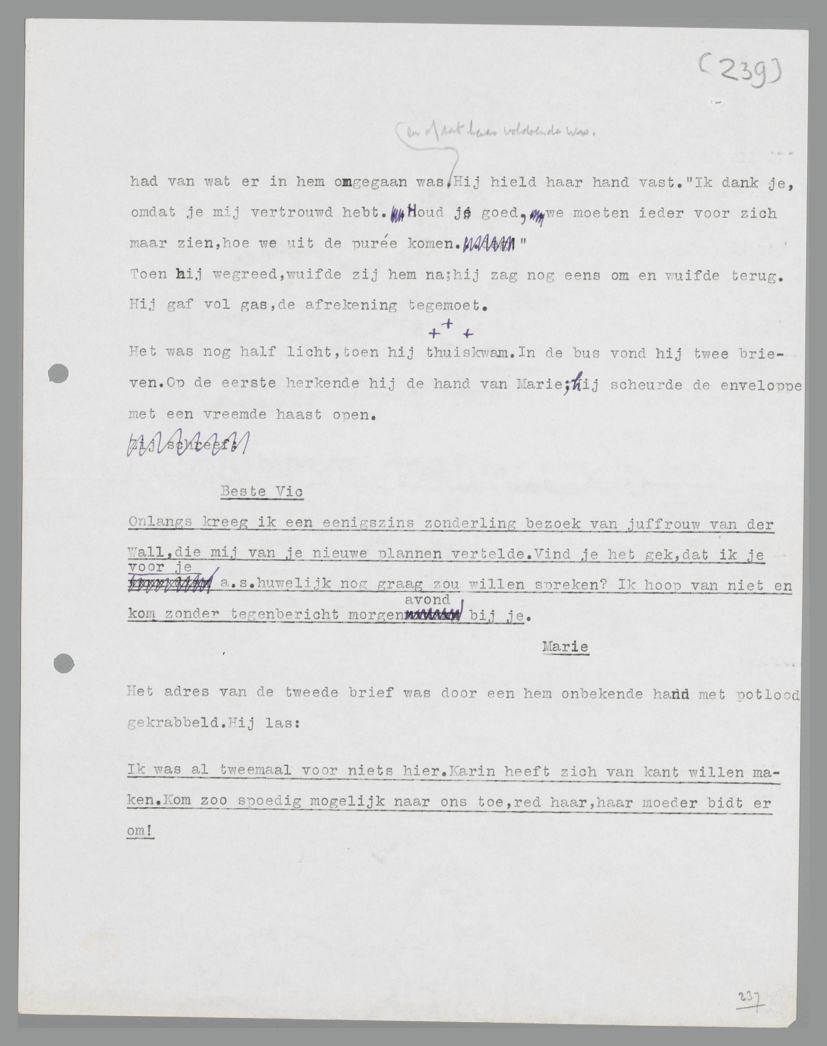 Het was nog halflicht, toen hij thuiskwam. In de bus vond hij twee brieven. Op de eerste herkende hij de hand van Marie; hij scheurde de enveloppe met een vreemde haast open.