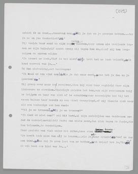 Radeloos keek hij om zich heen: naar het lampje, een jurk op een stoel, het nachtkastje. Plotseling schoot het door zijn hoofd: de revolver, die moet ik wegnemen! Hij schoof het laatje open: de revolver lag er. Hij nam hem op en wilde hem in zijn zak steken, toen Karin een gil gaf. Verrast draaide hij zich om; zij greep naar de revolver, die hij nog in zijn hand had; hij drukte haar in het kussen terug, zij worstelden even: toen lag hij hijgend half naast, half bovenop haar. Zij steunde, haar lichaam voelde hij krampachtig tegen het zijne schokken.