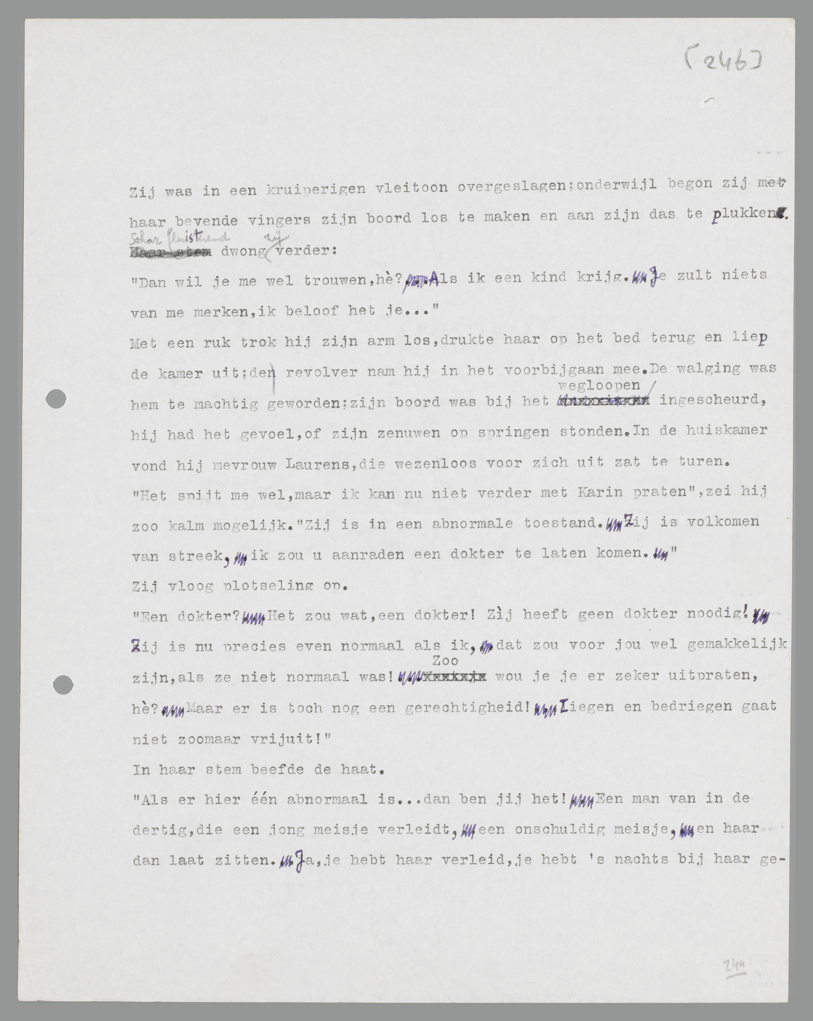 ‘En wilt u mij nu nog vertellen, dat zij normaal is?’ beet hij mevrouw Laurens toe. ‘Stop haar liever in bed en haal een dokter, in plaats van hier te staan jeremieren!’