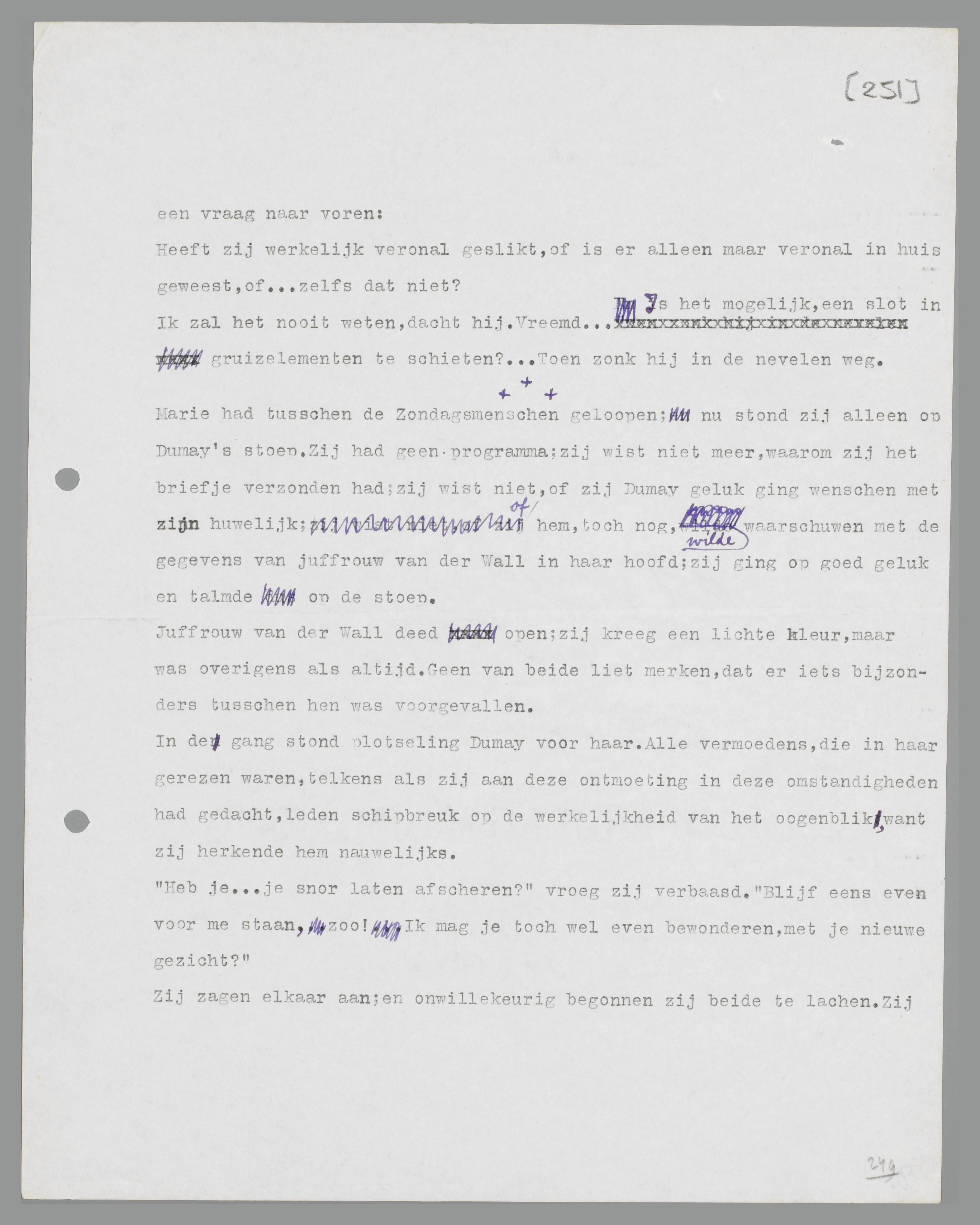 Marie had tussen de zondagsmensen gelopen; nu stond zij alleen op Dumay's stoep. Zij had geen programma; zij wist niet meer, waarom zij het briefje verzonden had; zij wist niet, of zij Dumay geluk ging wensen met zijn huwelijk; of hem, toch nog, wilde waarschuwen met de gegevens van juffrouw Van der Wall in haar hoofd; zij ging op goed geluk en talmde op de stoep.